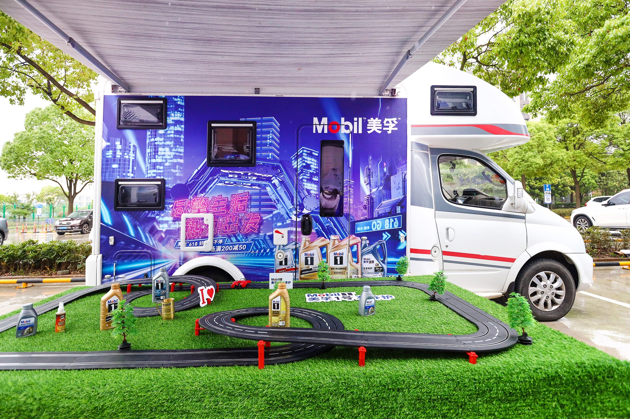 除此之外,美孚的“‘孚’生驿站美孚房车”也来到了现场,从通勤能量站摇身一变化身美孚1号车养护——养护车诊所。房车内安装透明试管陈列装置,展示美孚新品以及替换下来的机油旧品,形成鲜明冲突,彰显保养的重要性。房车外设置玩具赛车装置,更增添了与消费者的互动性。
