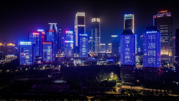 (重庆地标建筑群启动盛大灯光秀,点亮滨江两岸,共庆品牌盛事)